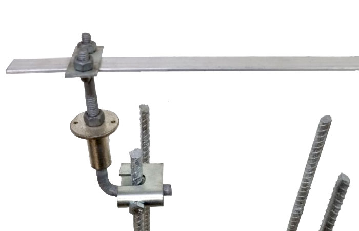 Neste grupo são apresentadas as ferragens rebar em aço especial de Ø 3/8” com 3 metros, galvanizadas a fogo e de Ø 8mm com 3 metros de comprimento, com seus acessórios para montagem, e ainda os diversos inserts, bem como clips duplos galvanizados de várias medidas para as conexões ficarem concretados e conectados de forma fácil e eficiente, para que as construções possam fazer uso destas ferragens que serão inseridas internamente nas ferragens das colunas e lajes, e o sistema de SPDA seja totalmente interno e com menor custo, sem a necessidade de instalações externas, que normalmente comprometem a estética das edificações e são suscetíveis a manutenções constantes.